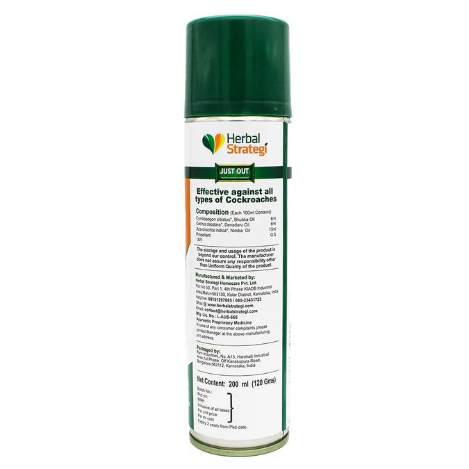 Introducing our Certified Ayurvedic Cockroach Repellent Aerosol Spray—an effective, and non-toxic solution. Certified by the Department of Ayush, it acts as a home vaccine against cockroaches**. Formulated with 100% herbal actives from essential oils and plant extracts, no chemical actives, safe for Pets and Babies, and Vegan/Cruelty-Free. Experience powerful protection in a convenient aerosol spray, keeping your home roach-free with natural ingredients.