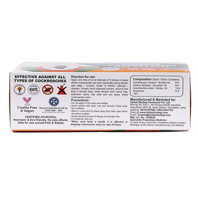 Introducing our Cockroach Repellent Oil Gel, specially formulated for kitchens which have a lot of confined spaces and appliances that can become hiding and nesting spots for cockroaches. Just add 4 drops in kitchen cabinets, cupboards, near appliances and at a 6 Inch interval on kitchen slabs/shelves. You can see an immediate effect. The cockroaches won’t enter these spaces and won’t return for a long time. This safe yet highly effective oil gel provides a targeted solution to repel cockroaches from places where safety is of paramount importance.